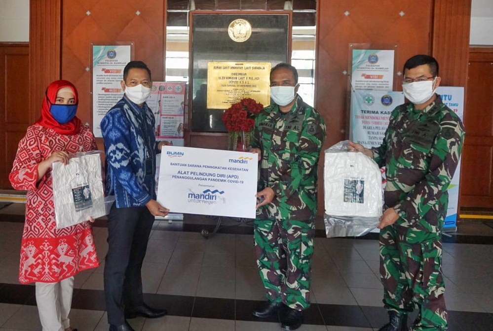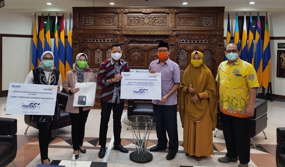 Surabaya, JATIMMEDIA.COM – Guna mendukung program Pemerintah dalam hal percepatan penanganan wabah covid-19, Bank Mandiri melakukan serangkaian kegiatan berupa pemberian bantuan Alat Pelindung Diri (APD) dan Sarcovid Desinfektan Booth kepada Rumah Sakit Univesitas Airlangga (RSUA) dan Rumkital Dr. Ramelan (RSAL).
