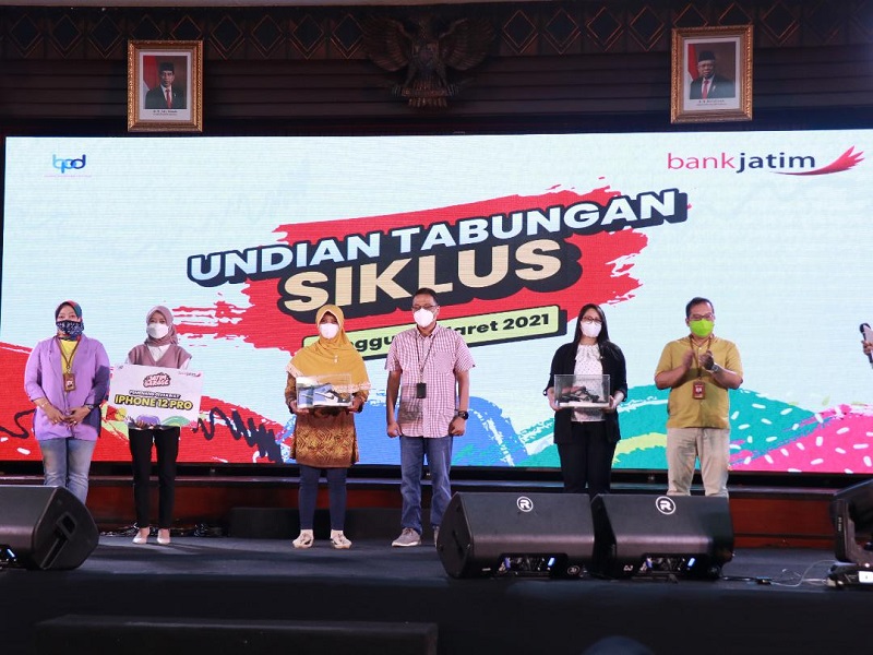 Surabaya, JATIMMEDIA.COM – Sebagai bentuk apresiasi kepada nasabah setia, khususnya nasabah Tabungan Siklus, PT Bank Pembangunan Daerah Jawa Timur Tbk (bankjatim) menyelenggarakan Undian Tabungan Siklus untuk pertama kalinya, bertempat di Ruang Bromo lantai 5 Bank Jatim Kantor Pusat Surabaya, Minggu (21/3/2021).